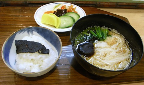 ここで食事として、ご飯とにゅうめん、香のものが出されます。