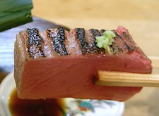 表面を炙られたよこわ、酢加減も絶妙な鯖と、お造りそのものも美味しいん