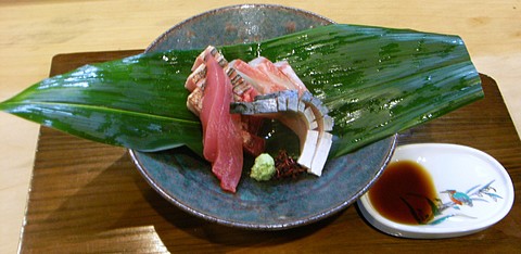続く「お造り」は、まぐろ、よこわ、鯖の酢〆、鯛の4種類が盛られています。