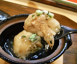 揚げて煮てあり、ねっとりした食感で、ダシの旨みがしみて美味しかったです。