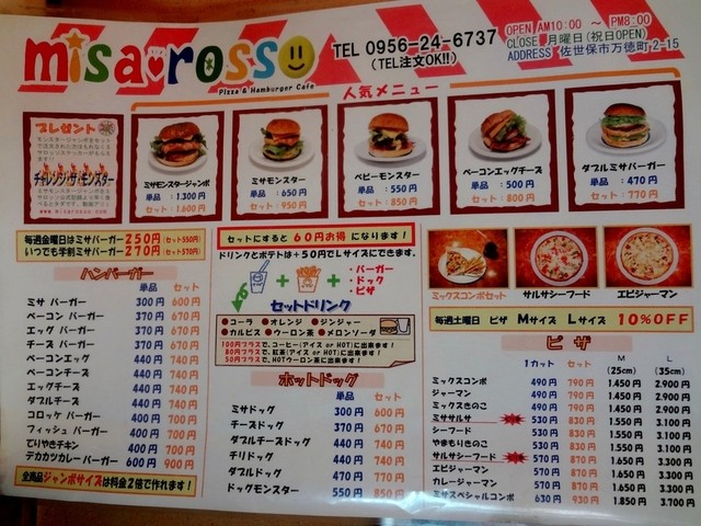 ハンバーガーの他に、ホットドッグやピザもそろっている