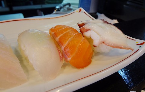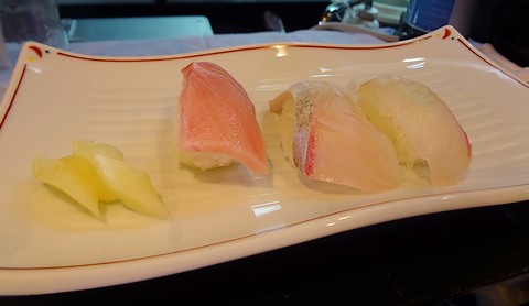 まずはガリと、右からひらめ、かんぱち、まぐろが出されます。