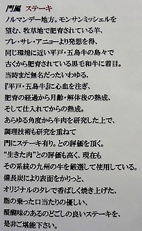 パンフレットにはステーキへのこだわりが書かれています