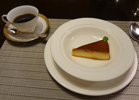 食後には、香ばしいコーヒーと濃厚なカスタードプリン