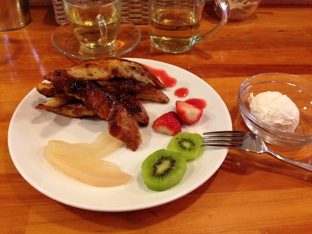 フレンチトースト表面は、キャラメリゼしてあり、カリカリモチモチです。