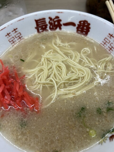 麺は茹で具合を聞いてくれましたが、普通で充分な歯応えがあります。美味しくスルスル食べてしまい、替え玉¥100して紅生姜で味変も楽しめました❣️