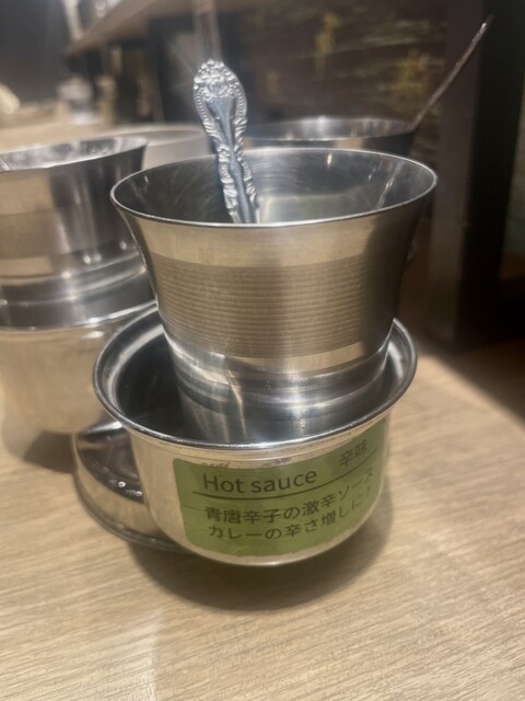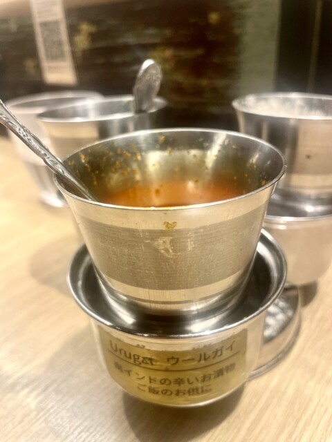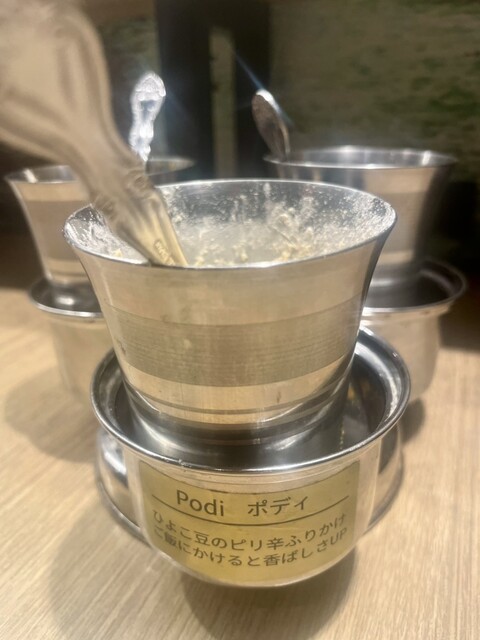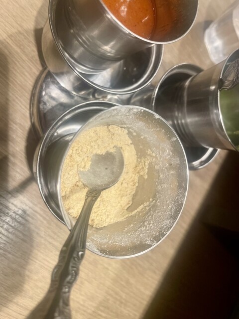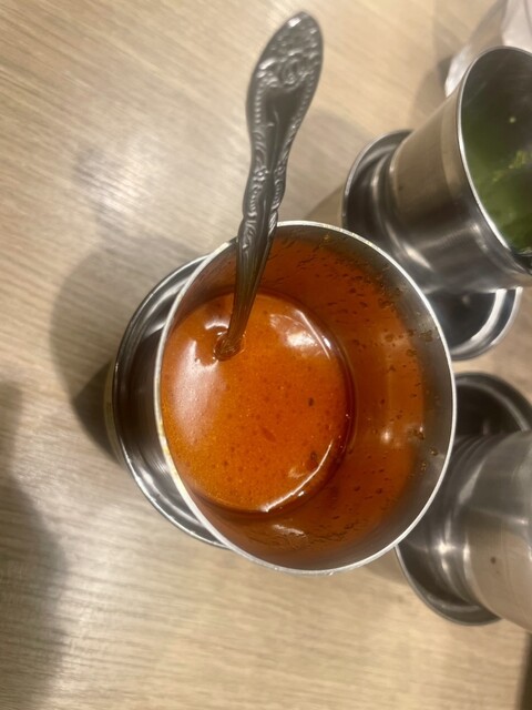相変わらず、ヒヨコ豆のスパイスなどを駆使して自分好みの辛さで楽しみます。おかわりを注文すると、小さな土鍋からよそっていただくスタイル。「全部入れてもらえますか?」とお願いすると「足りなかったらまた言ってください」とのこと。3枚目の写真の量をよそっていただきまして、次のおかわりはきっと無理