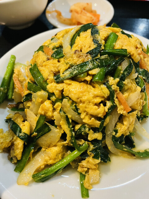 シャキシャキのニンニクの芽たちとの相性を、オイスターソースの効いた特製の味付けが演出してくれます。