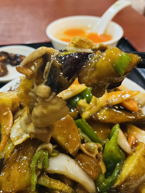 シャキシャキの玉ねぎをはじめとする野菜たちとの相性を、八角の効いた特製の味付けが演出してくれます。