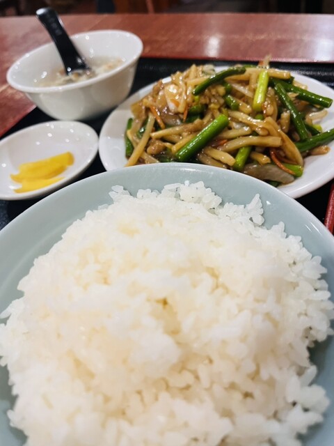 おすすめメニューの「豚肉とニンニクの芽定食」でお願いしました!