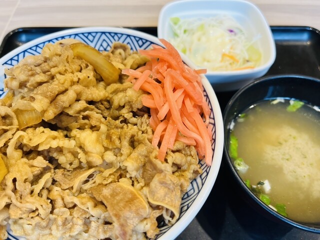 いつもの「朝牛セット」で、シンプルにいつもの「大盛り」でお願いしました!