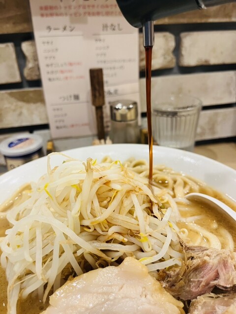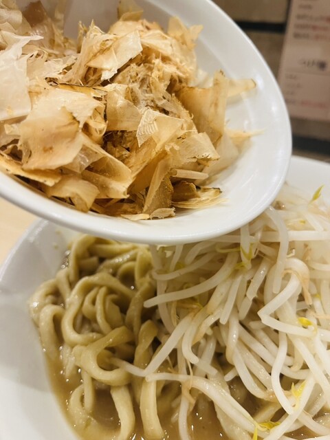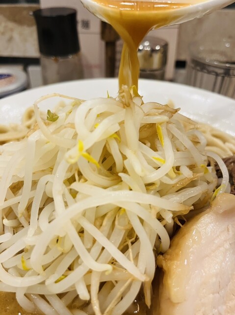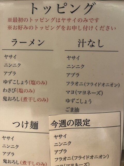 「アブラ少なめ」の「麺固め」でお願いしましたが、麺は既にお鍋に投入されてしまっているからか、「麺固め」はできないかも、「気持ち固め」でどうですか?とのことでしたので、そちらで快諾。