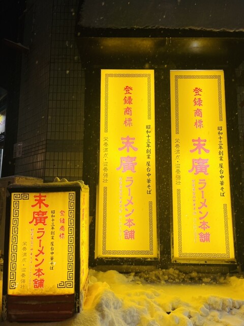 しんしんと雪の降る中、営業しているのを見つけてしまった「末廣ラーメン」さん!