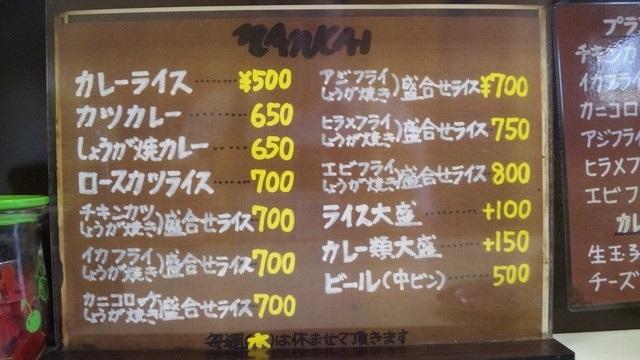 今回は平日の11:40の入店でしたがすでに5人のお客様(すべて男性の20~50代と思われる単独のお客様)が来店されており、カツカレーはじめヒラメフライとしょうが焼きの盛り合わせライス@750円を注文されておりましたね。