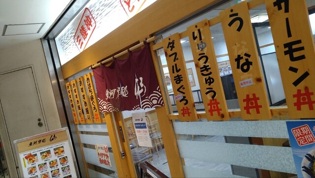 コスパに優れた海鮮丼です。観光地なら3倍の価格でしょう。夕方、ビジホにチェックインする前に立ち寄りました。駅1階の食料品街郡山ピポットにあり、オーダーストップは18:30で、閉店は19:00のようです。店内の券売機で食券を購入。バラちらし丼1080円に決めました。店内はすべてセルフです。各種海鮮丼やにぎり寿司もあるようですが比較的廉価な丼にしました。2〜3分後に番号を呼ばれて丼を取りに行きます。けっこうなボリュームです。味噌汁やオレンジなどもついています。ご飯は酢飯だと思われます。サーモンやマグロ、白身、貝柱、イクラが散りばめられています。こういう雑な海鮮丼が好きな人には最高です。自分はすべて美味しくいただきました。ご馳走様でした。