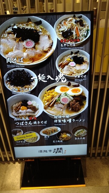 新潟駅に降り立ってビジホにチェックイン後に向かいました。駅ビルの2階ニイガタバル★麺横丁にあります。他のラーメン屋さんには並びがある中、スムーズに入店。場所は一番良い位置にお店があるのに?とりあえず、店頭の券売機で食券を購入。ちょい複雑で時間がかかります。注文は中華そばの普通。背脂多めとかいろいろできるみたいです。カウンター席が7席で他はテーブル席で構成されています。着席場所は強制的に決められます。窮屈なカウンター席に座って待つこと10分、着丼です。海苔と背脂が表面を覆っています。チャーシューは部位の違う3枚と小さなメンマ、ナルトで構成されています。背脂に混じって刻みタマネギが隠れていて良い仕事しています。スープをレンゲで一口。確かに美味い。麺は太麺でもちもちしています。カップ麺どん兵衛を思い出しました。見た目はうどんとも言える麺です。これはこれでスープに絡んで美味いです。ご飯にも合うラーメンでした。美味かった。ご馳走様でした。このお店はいろいろな意味で居心地が良くないのが欠点かも。