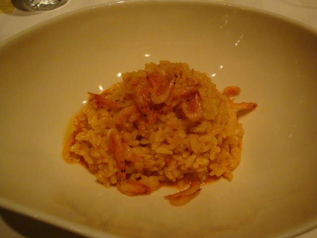◆ 手長海老風味の焼きメロッソ、桜えびのフリット添え