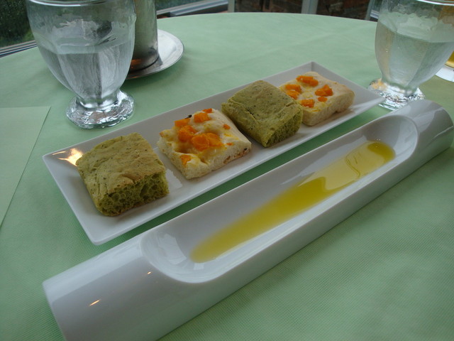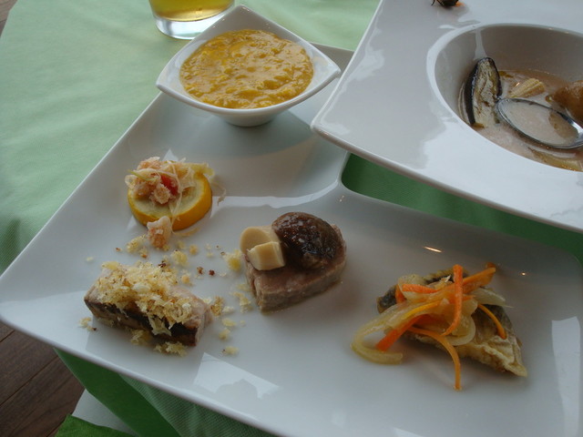 3種のソース(シェリービネガー風味のピナグレタ、ライムの皮・果汁・バジリコオイルで作る
