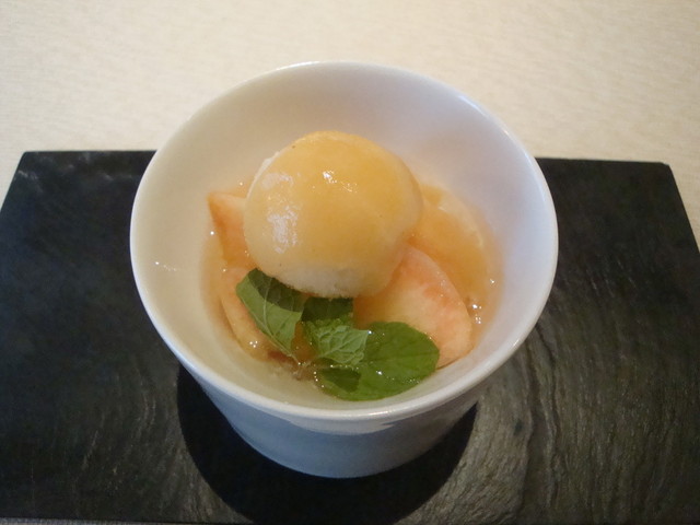 甘さが程良い。夏の冷たいデザート。口中に清涼感をもたらす一品。