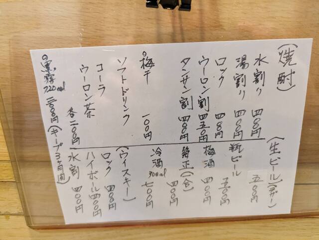 ドリンクメニュー