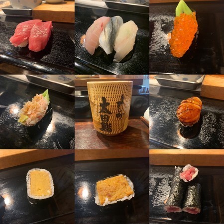 マグロ2貫、ひらめ、勘八、こはだ、カニ軍艦、いくら軍艦、ホタテ、玉子、鉄火巻・・・あっという間のお昼の一通りコースをいただく。