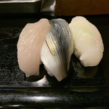 そして、ヒラメ、コハダ、カンパチの3貫を次にいただく。これもいつもと同様に美味しい。今回は、ヒラメ、カンパチも美味しかったが、コハダが大きめでいい感じの〆具合でよかった。