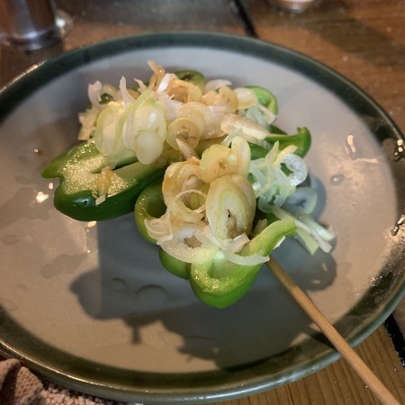 後半になるといただくピーマンの生をネギ醤油で頼む。さっぱりしていて美味しいのだ。