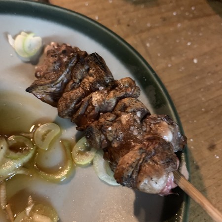 そして焼いてもらいます。いつもはお任せで行くのですが、この日は全て自ら注文しました。まずはチレ、脾臓です。レバーとはちょっと違いあっさりした味ですが、これが美味しい。なかなか食べられないのであれば頼みます。