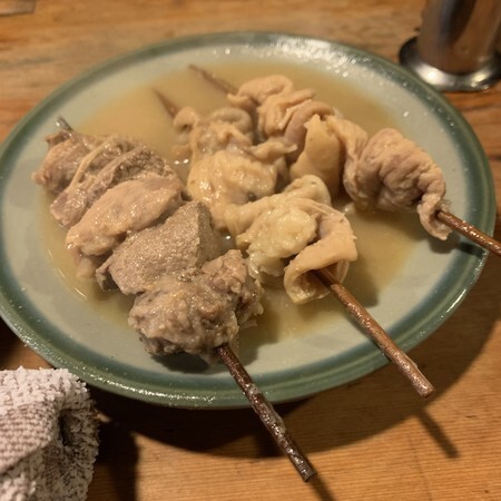 カシ味噌。カシラに味噌をつけて焼いただけだが、これが結構美味しい。特に脂みがいい時に頼むのがいい。脂と味噌が焼かれるのがいい感じの甘みのある香ばしさを口の中に届けてくれる。