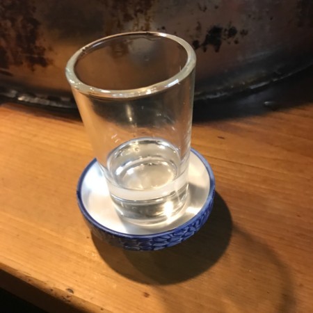 自分はと言えば、いつものペースで一番外側の席に陣取り、いつものように頼む。「焼酎ください!」・・・そして注がれるキンミヤ焼酎。ウメは一滴。味はいつもと一緒だ。ここで飲むキンミヤの味はちょっと違う。やはり美味しいのさ!