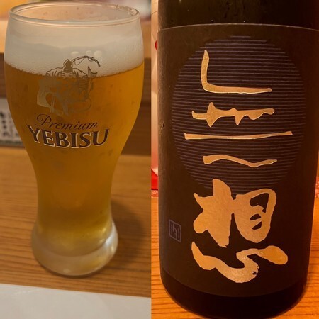 飲み物は、エビスの生ビールを頂いたあと、この日は夢想という新潟の酒。これがめっちゃ美味しかった。