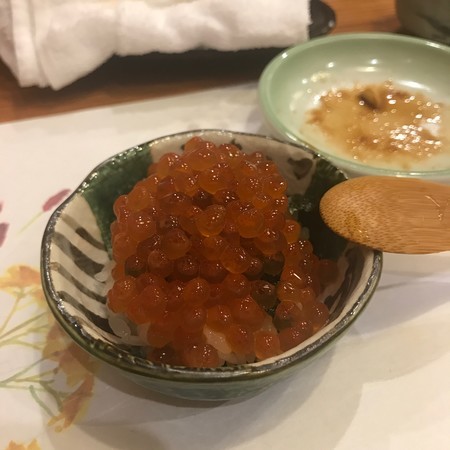 いくらは時間の違い。左が時間が経っており、ねっとりした感じ、右はそれよりは若くサラッとした感じ。違いを感じられて何故かほっとする自分。