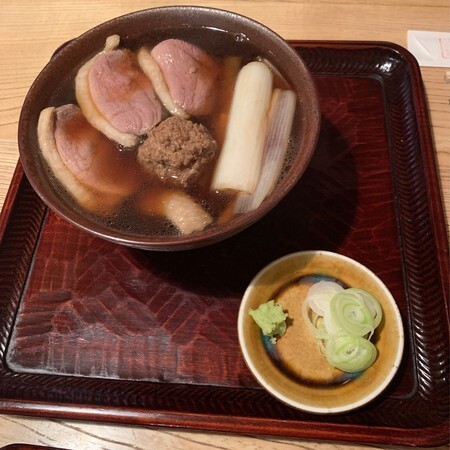 そして運ばれてくる鴨なん。いつも変わらないこの見栄え。真ん中のつくねが光っている。それを囲む肉厚の鴨肉・・・ここまで厚く豪快な鴨肉を入れている鴨なんを出す蕎麦屋はなかなかない。そして南蛮・・・これがないと鴨のうまさは引き立たない。役者は揃った。
