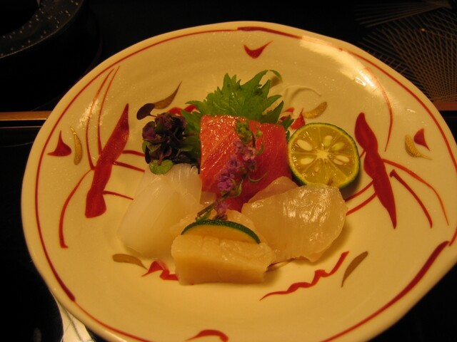 筍木の芽味噌、白川鯛、鮃うす造り、伊勢海老鬼殻焼、春子鯛煮付、伊豆牛胡椒焼、白身あられ茄子、焼たらば蟹、白御飯、パパイヤ茜