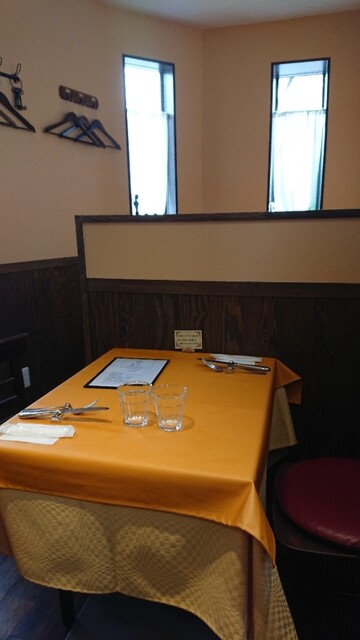 好きなパスタを選ぶ仕組み。平日と土日でメニューが一部異なる。味も色も濃厚なソース。黄色いのは卵の量が多いから?パスタは中太でこしが強い。ベーコンの旨味とソースの相性良し。濃厚なので後半はもたれる。鶏の絵柄の皿はオレンジ色と青色。料理と雰囲気と合っていて楽しい。