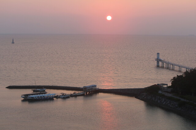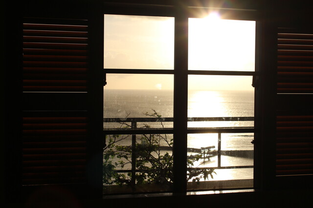 朝食といっても時刻は10時。日が昇り海がエメラルドグリーンに輝いている。