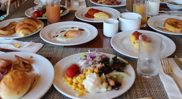 ブセナリゾート最終日の朝も「ラティーダ」でブッフェ。結局、朝も夜も全部ラティーダにした。幸運にも最後の朝はテラス席の最前列。