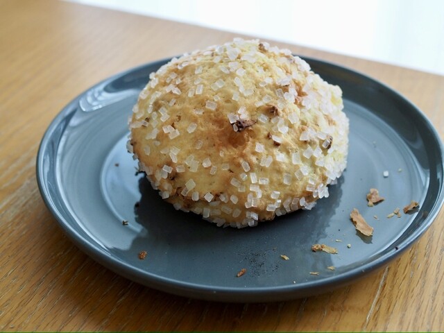 外はパリッとしているのに中がもっちりしているのが不思議な感覚。全粒粉の生地のようで甘みがあります。これうまい。