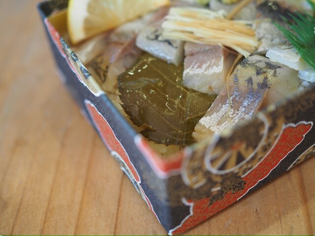 鯵の身は厚く、浅めに酢で締められていて酢飯とよく合います。わさびも本物、生姜と桜の葉の香りが爽やかです。