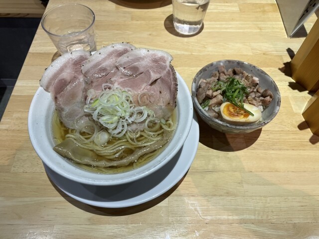 「極上貝出汁淡竹 ラーメン」と「炙りレア焼豚丼セット 」