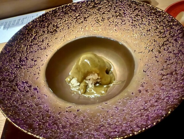 • うにパフェ: 幕開けは、目にも鮮やかなサプライズ。ウニの甘みが口いっぱいに広がり、贅沢な夜の始まりを告げる