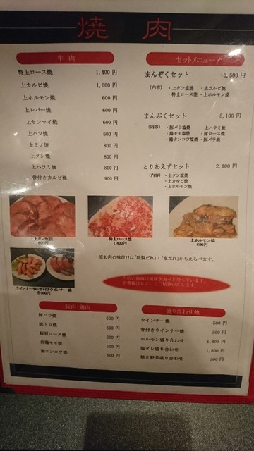 お肉はまんぞくセット(上タン塩、上カルビ、特上ロース、上ホルモン)5500円を頼みました。