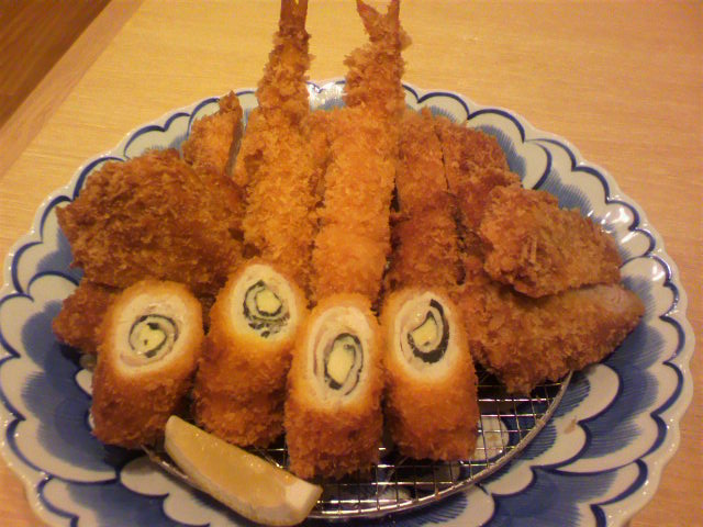 ロースとんかつ・ひれかつ・海老フライ・チキンチーズフライ(青じそ入)・野菜フライ(玉ねぎ&かぼちゃ)が入っています。