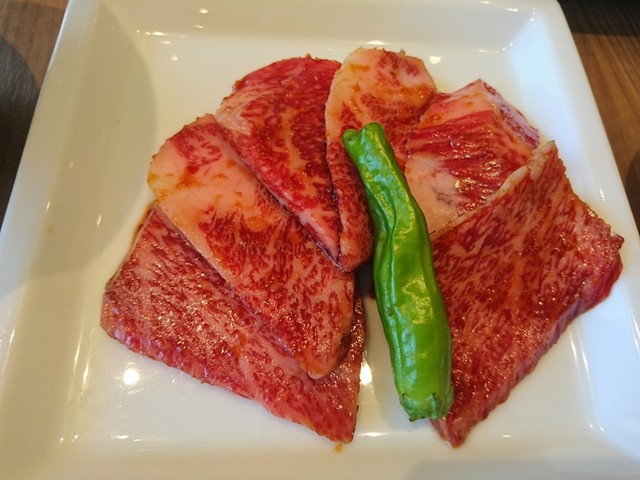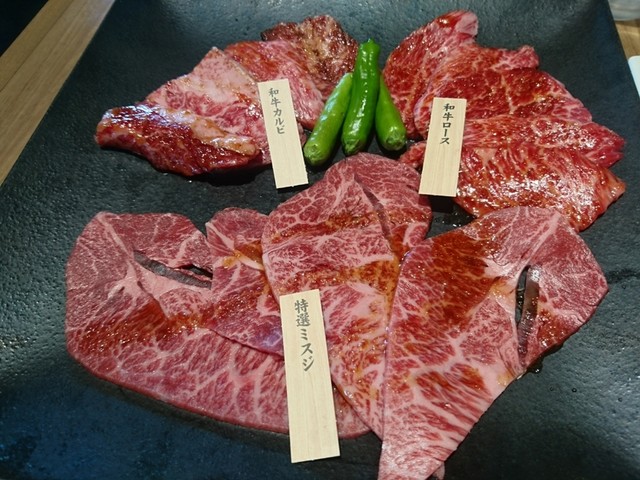 宮崎牛が期間限定だったので、三種盛合せを頂きました。説明がなかったのでどの部位かは不明ですが、微妙に味わいが違って、もちろん美味しかったです♪