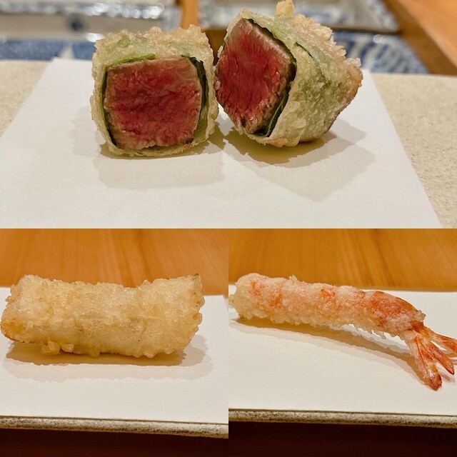 定番の海老、キス、そして桜エビ、赤座エビ、白魚、雲丹と続き、シャトーブリアンもとてと美味しかったです!