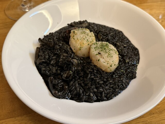 いつも通り、生ハム、レバーペースト、エビから始まり、サラダ、サルシッチャそしてオリーブを経由して、締めは牡蠣グラタン、トマトソースのスパゲティー、ホタテのイカ墨リゾット。ラスボスは絶品ティラミスと、持ち帰りせず完食しました!