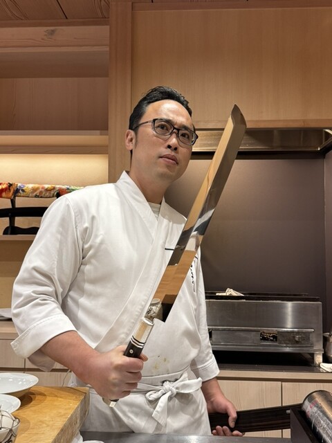 写真やアイコンでも目立っている刃渡り40cmの包丁?小刀?そして大将!笑