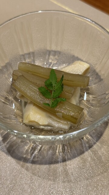 まずは昆布とシビ節の出汁で静かにスタートし、蕗と筍、ホタルイカのなめろうは季節感と酒肴の妙を感じる一品。