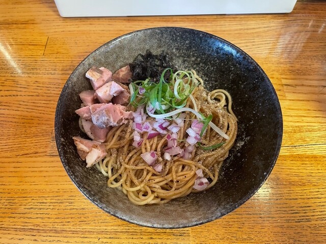 シャキシャキの玉ねぎと細かいチャーシューに、煮干し出汁が絡まり抜群の美味しさを醸し出します。