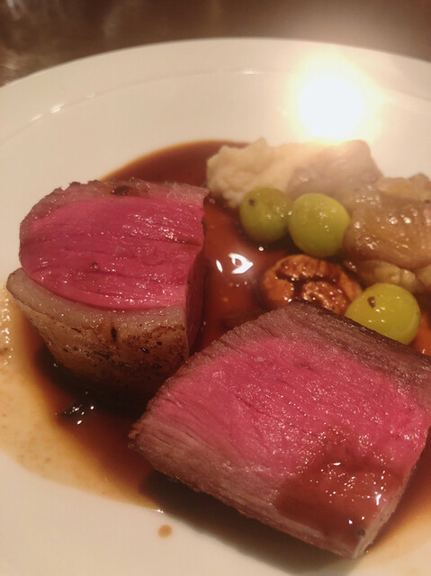 ●蝦夷鹿のロースト 根セロリのピュレ 栗と銀杏のソテー